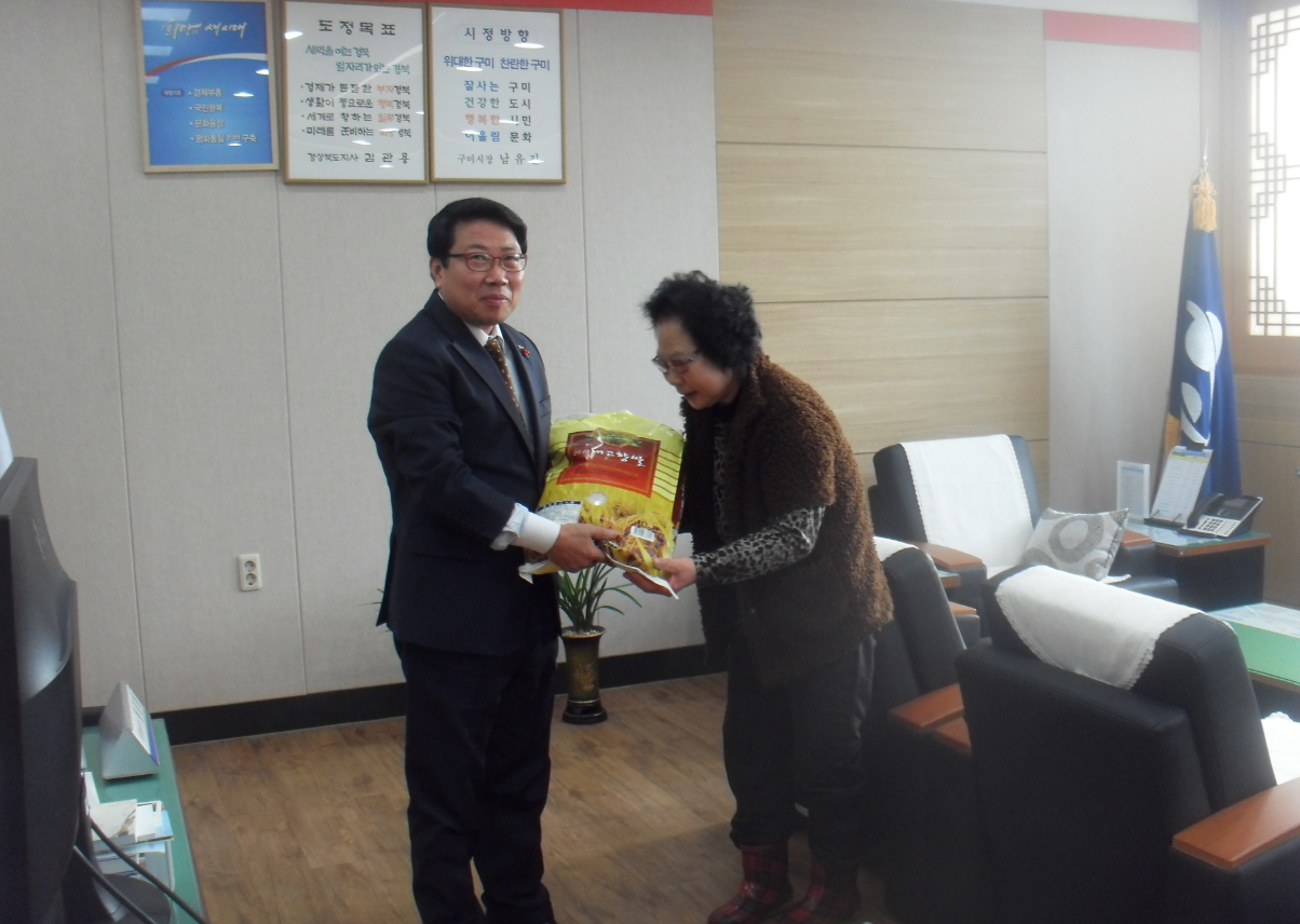 이날 전달한 성금과 성품은 선산출장소 4개 부서에서 중앙부처, 경상북도, 구미시로부터 2013년도 업무추진 우수부서로 받은 시상금을 어려운 이웃들에게 전달해 미담 사례가 되고 있으며, 어려운 가정에 전해 달라며 쌀 20포 (10KG)를 기탁한 한 정미소는 매년 익명으로 선행을 베풀어 지역 내 큰 귀감이 되고 있다.