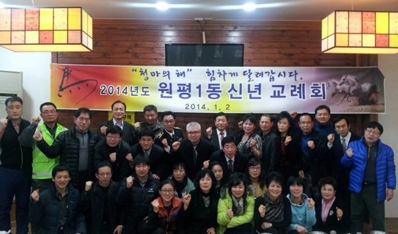 원평1동(동장 김우춘)은 1월 2일 관내 식당에서 도ㆍ시의원, 기관단체장, 자생단체 회원 및 주민 등 80여 명이 참석한 가운데 동민의 화합과 발전을 다짐하는 2014年 원평1동 신년교례회 행사를 개최했다.