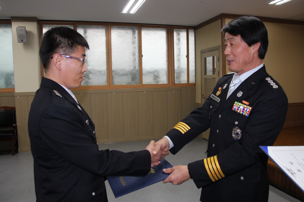 한편, 이날 인사발령에서는 소방장으로 승진한 윤중식 등 승진 소방공무원 2명, 연고지 배치 등에 따른 소방위 및 소방장 등 29명, 신규 임용 12명이 임용장을 받았다.