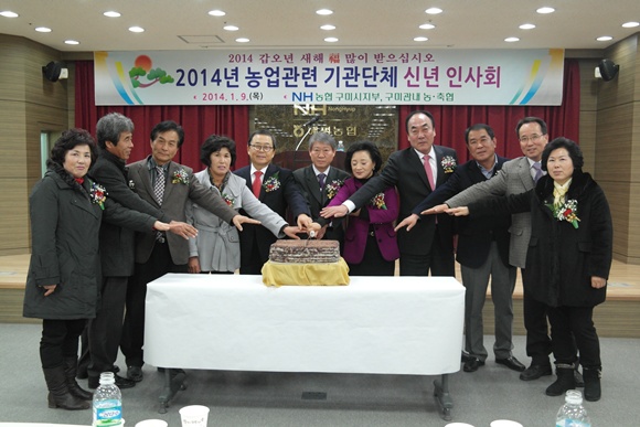 2014년 1월 9일 희망찬 갑오년 새해를 맞이해 NH농협구미시 지부(지부장 직무대행 김학철) 주최, 관내 농ㆍ축협은 해평농협 3층 회의실에서 농업 관련 기관단체 신년인사회를 개최했다.