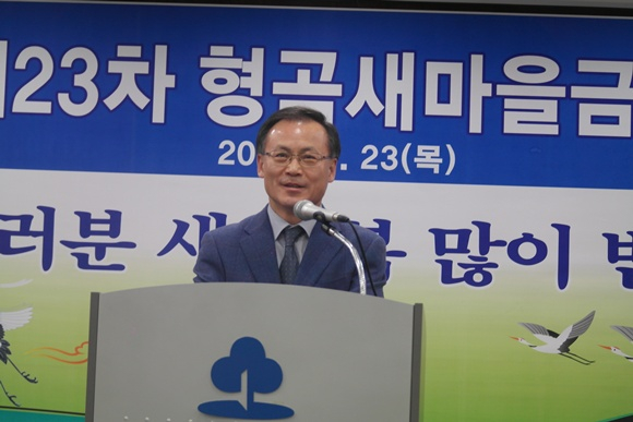 최종원 부시장은 "제23차 정기총회를 진심으로 축하드리며 탁월한 경영능력을 지닌 김철호 이사장과 직원ㆍ회원분들의 노고에 진심으로 감사드린다"며, "형곡 새마을금고가 주민들과 지역사회 발전에 이바지해 거듭 발전ㆍ성장해나가기를 바란다"고 말했다.