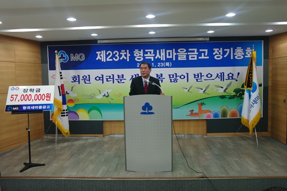 형곡 새마을금고(이사장 김철호)는 1월 23일 금고 3층 강당에서 '제 23차 형곡 새마을금고 정기총회'를 개최했다.
