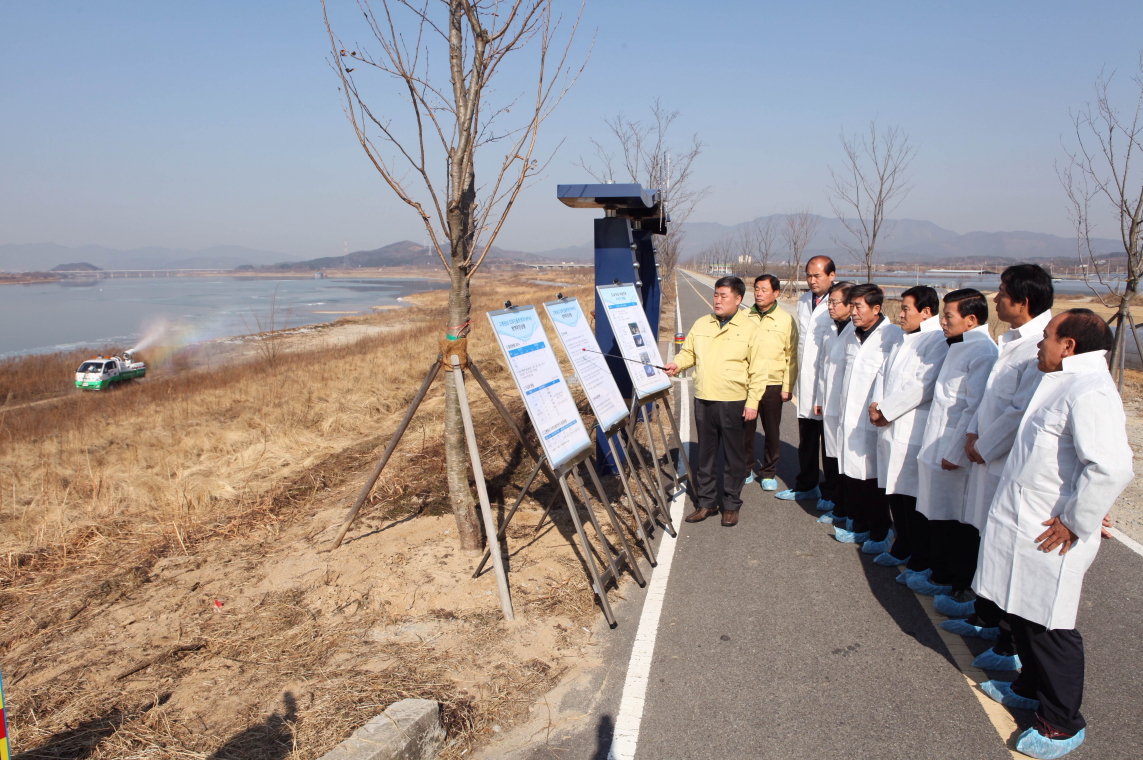 최근 전북 고창과 부안에서 발생한 고병원성 AI의 감염원으로 지목된 가창 오리떼의 이동 예상 경로에 포함되어 있는 구미 해평습지와 방역작업을 하고 있는 김천IC를 방문해 철새의 이동상황과 방역 대책을 집중 점검했다.