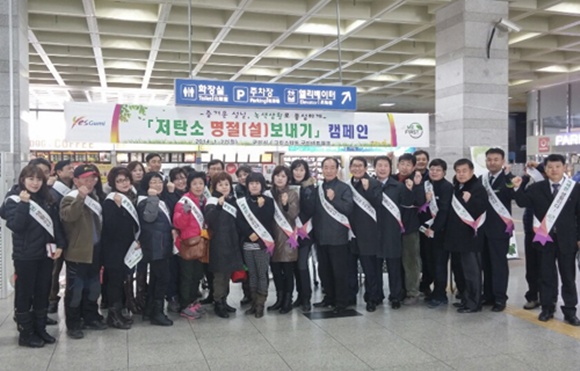 저탄소 설 명절 보내기 우리 가족 다섯 가지 약속 서명운동을 전개 하면서 중앙대로, 역전로, 문화로, 중앙시장을 직접 방문해 저탄소 설 명절 실천수칙, 친환경 운전 수칙, 홍보 전단지 2,000매를 시민들에게 배부했다.