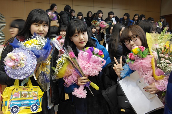 졸업생 3학년 1반 이유정 학생은 "학창시절이 무척 재미있고 행복했었는데 이젠 추억과 그리움으로 남아 서운하다"며, "친구들이 많이 보고 싶을거 같다"고 말했다.