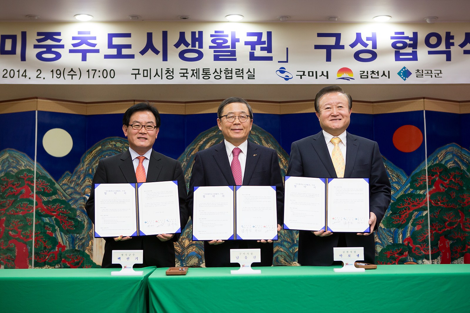 남유진 구미시장, 박보생 김천시장, 백선기 칠곡군수 등 3개 시ㆍ군 단체장이 참석한 가운데 개최된 이번 협약은 구미를 중심으로한 ‘구미 중추도시생활권’ 구현을 위한 공동발전 계획 수립 및 생활권 사업 발굴 추진과 정보교류, 교육ㆍ문화ㆍ복지 등 지역 간 이익 증진을 위해 3개 시ㆍ군이 공동 협력할 계획이다.