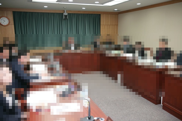 2월 20일 오후 2시 구미시 의회 산업건설위원회에서 다룰 가축 분뇨 공동자원화 시설 사업에 따른 도시 관리 계획안에 대한 의견 제시의 건을 놓고 잡음을 일으키는 형태를 시의원이 보여주고 있다. |