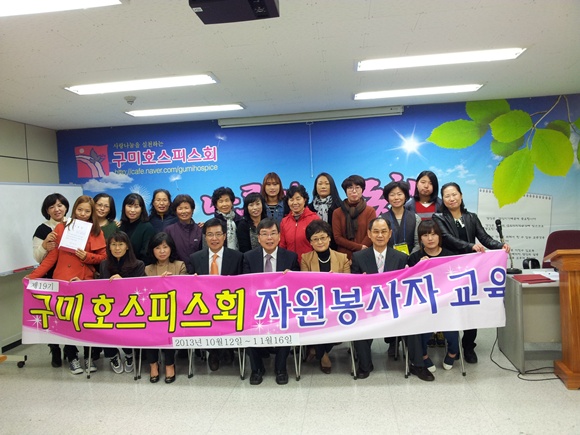 구미호스피스회(회장 우극현)는 3월 15일 ~4월 26일 까지 7주간 매주 토요일 오후 1시 30분 ~5시 30분까지 구미호스피스교육장(강남병원 부근)에서 '제20기 호스피스 자원봉사자 교육'을 실시한다.