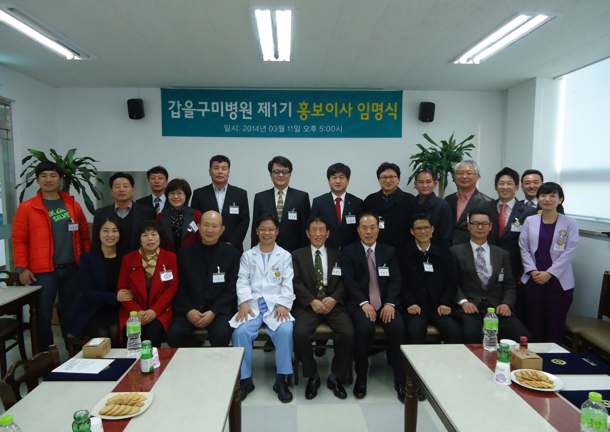 갑을구미병원(원장 권기영)은 2014년 3월 11일 지역 주민과의 상생을 위한 '제1회 갑을구미병원 홍보이사 임명식'을 개최했다.