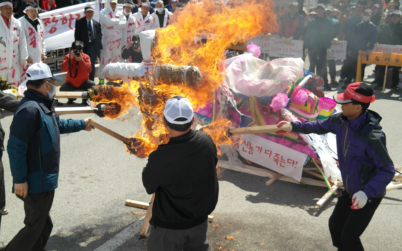이날, 구미 지역 관내 축산농가 및 농업인단체 회원들은 금오공대 진입을 수차례 시도하고 금오공대 총장의 허수아비를 화형식 하는 등 금오공대 측에 대한 대응 수위를 높여 분노를 표출했으며, 현장은 아비규환을 방불케 했다.