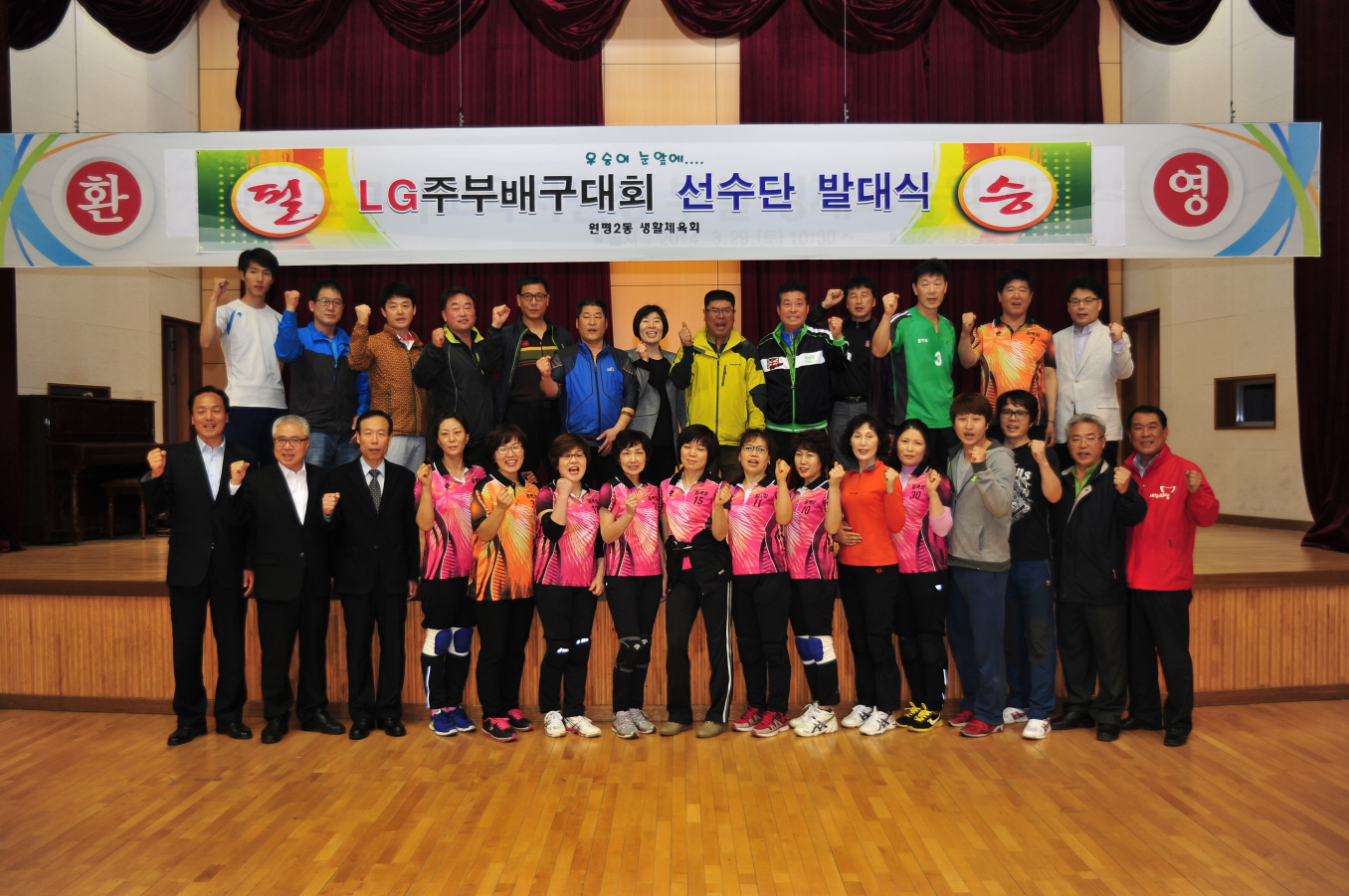 원평2동(동장 강영수)은 4월 15일 구미초등학교 실내체육관에서 원평2동생활체육회(회장 임정규) 주관으로 '제22회 LG주부배구대회' 우승을 다짐하는 발대식을 가졌다.