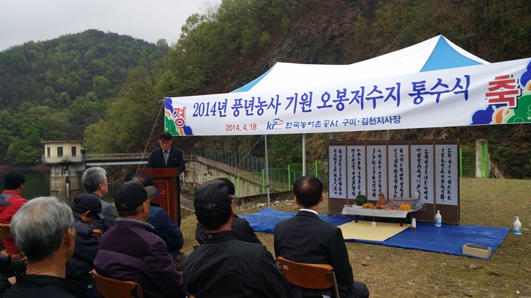 한국농어촌공사 구미ㆍ김천지사(지사장 배해직)는 본격적인 영농철을 맞아 2014년 4월 18일 김천시 남면 오봉리에 위치한 오봉저수지에서 통수식을 가지고 첫 급수를 시작했다.
