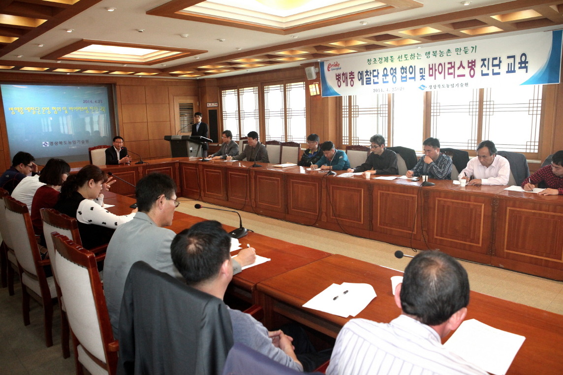 한편, 경북도농업기술원은 병해충 예찰단 운영에 앞서 지난 4월 25일 도내 시ㆍ군농업기술센터 병해충 관계관 30여명에 대해 병해충 예찰단 운영요령과 바이러스병 진단에 대한 사전 교육을 실시했다.