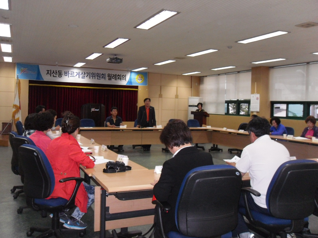 지산동(동장 이성수)은 5월 20일 지산동주민센터 2층 회의실에서 바르게살기운동 지산동위원회(위원장 이종석) 위원 20여명이 참석한 가운데 5월 월례회를 가졌다.