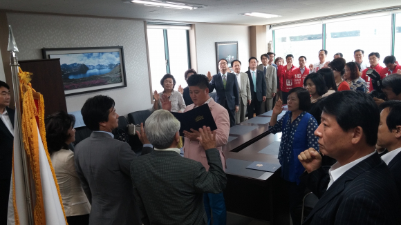 이날, 발대식은 공동선대위원장 및 선대위원 위촉식, 필승결의문 낭독 등의 순서로 진행됐다.