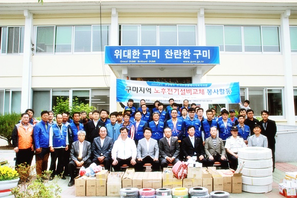 이번 봉사활동은 친서민 에너지복지 실현을 위해 경상북도 ,구미시, 전기공사협회, 전기안전공사, 한전 등과 합동으로 100여명이 동참해 농촌지역의 사회소외계층에 누전차단기, 전선, 조명 등 노후전기설비를 전액 무료로 교체해 주었으며, 무을면 주민들의 큰 호응을 받았다.