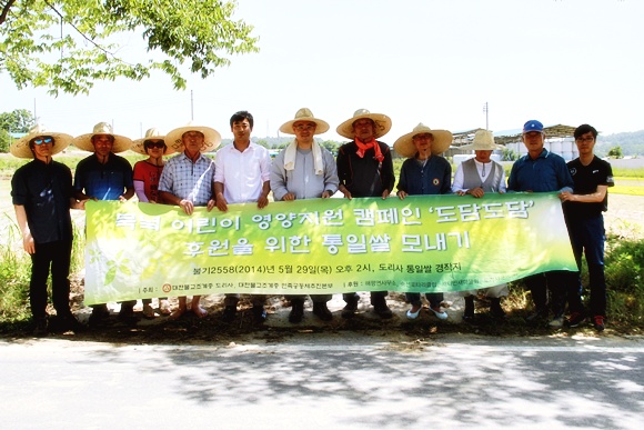 구미시 도리사(주지 묘장 스님)는 최근 북한 어린이 영양지원 캠페인 통일쌀 경작사업의 모내기 행사를 가졌다.