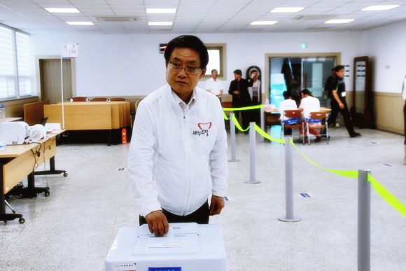 심학봉 국회의원은 선거날 오전 송정동 푸르지오캐슬 3단지 투표소를 찾아 투표를 했다.
