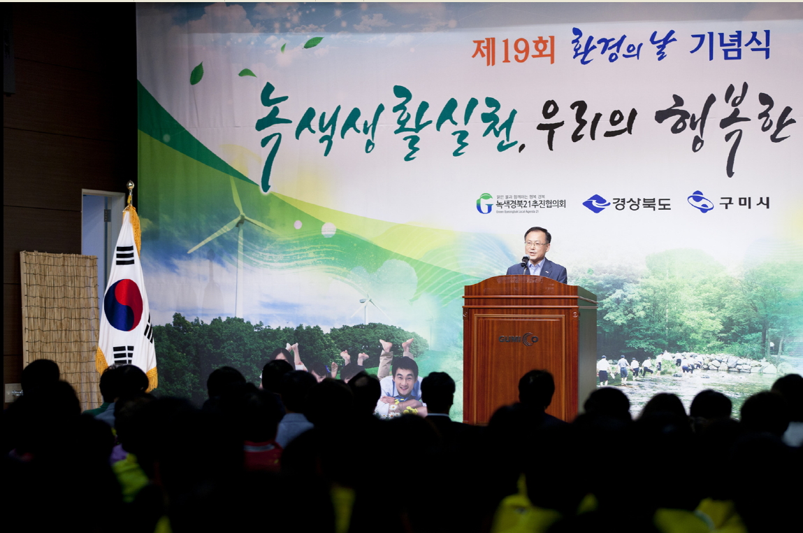 구미시(시장 남유진)는 경상북도 주최, 구미시, 녹색경북21 주관, 6월 5일 제19회 환경의 날을 기념해 구미코에서 '녹색생활실천, 우리의 행복한 미래입니다.' 주제로 기념행사를 개최했다.