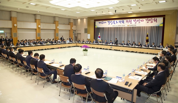 제10대 경상북도의회 의원 당선자 간담회가 6월26일 경북도청 강당에서 도의원 전체당선자(60명)와 김관용 경북도지사, 이영우 경북도교육감, 의회사무처장 및 사무처 직원 등 150여명이 참석한 가운데 진행됐다.