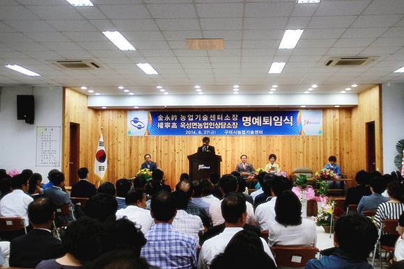 구미시농업기술센터는 6월 27일 농업기술센터 3층 강당에서 김영조 농업기술센터 소장과 권영고 옥성면농업인상담소장의 명예퇴임식을 가졌다.