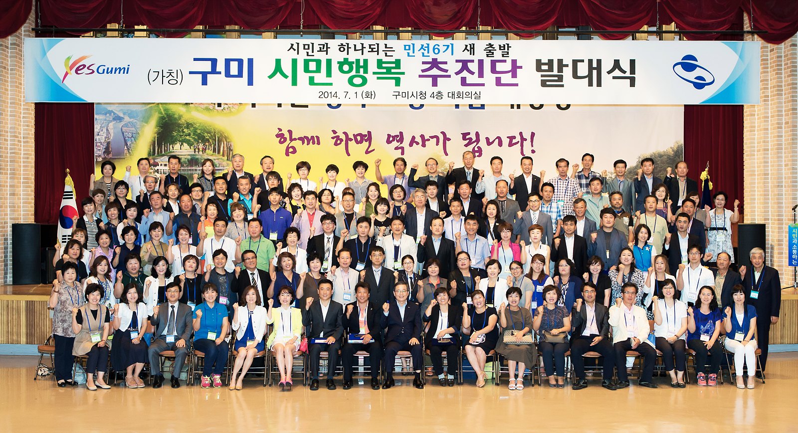 구미시(시장 남유진)는 민선6기가 새롭게 출발하는 첫날인 7월 1일, 시청 대회의실에서 시민들과 소통하는 시민중심의 시정을 펼쳐 나가기 위해 가칭 '구미 시민행복 추진단'발대식을 가졌다. 이번 행사는 6․4 지방선거 기간 동안 남유진 시장이 시민의 눈높이로 지역 곳곳을 누비며 느낀 '시민 소통의 중요성'을 민선6기 시정에 접목시키기 위해 추진한 것이다.