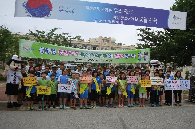 이날 행사는 등교길 교통안전 지도 캠페인(멈추고, 살피고, 확인하고 건너요), 등교길 첫 인사하는 법(녹색어머니회), 어린이 보호구역내 불법 주ㆍ정차단속, 등교길 학생 상대 교통안전지도 등으로 이루어졌다.
