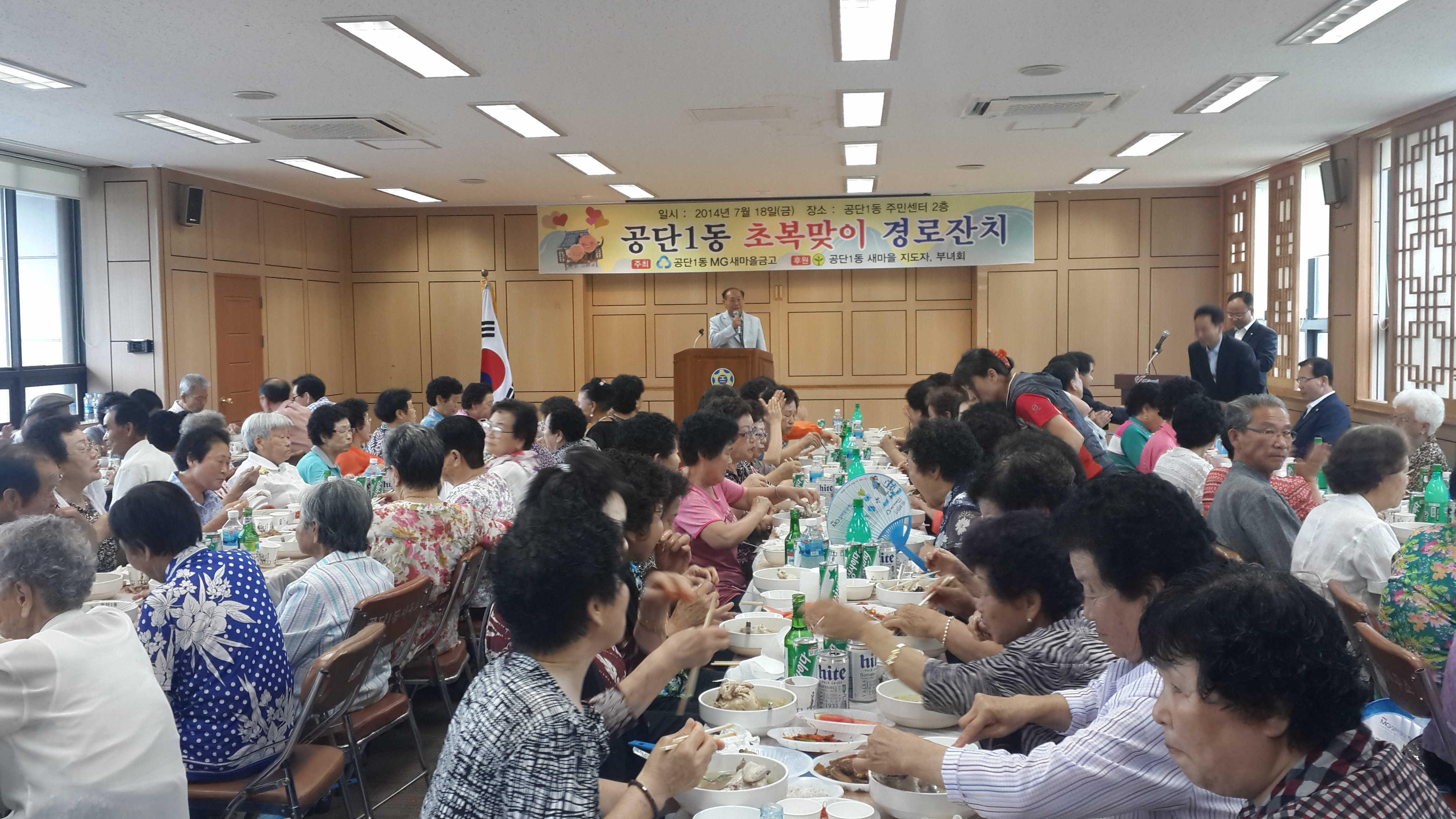 공단1동(동장 김용학)에서는 새마을금고(이사장 구본화) 주관으로 7월 18일 주민센터 2층 회의실에서 관내 어르신 100여명을 모시고 초복맞이 행사를 가졌다.