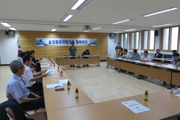 송정동(동장 류시건)은 7월 21일 동주민센터 2층 회의실에서 관내 기관단체장 및 방위협의회원 20여명이 참석한 가운데 7월 월례회의를 개최했다.