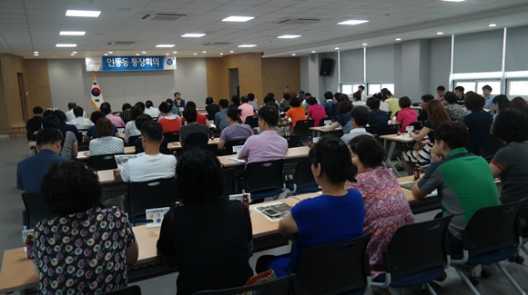 인동동(동장 박세범)은 7일 25일 동주민센터 2층 대강당에서 장영석 도의원, 통장 70명이 참석한 가운데 7월 통장회의를 개최했다.