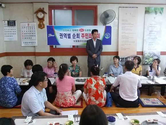 최현도 동장은 안전하고 행복한 도량동 만들기 플랜의 하나로서 권역별, 단체별 주민좌담회를 계획해 이날 그 대장정의 시작을 알렸다.