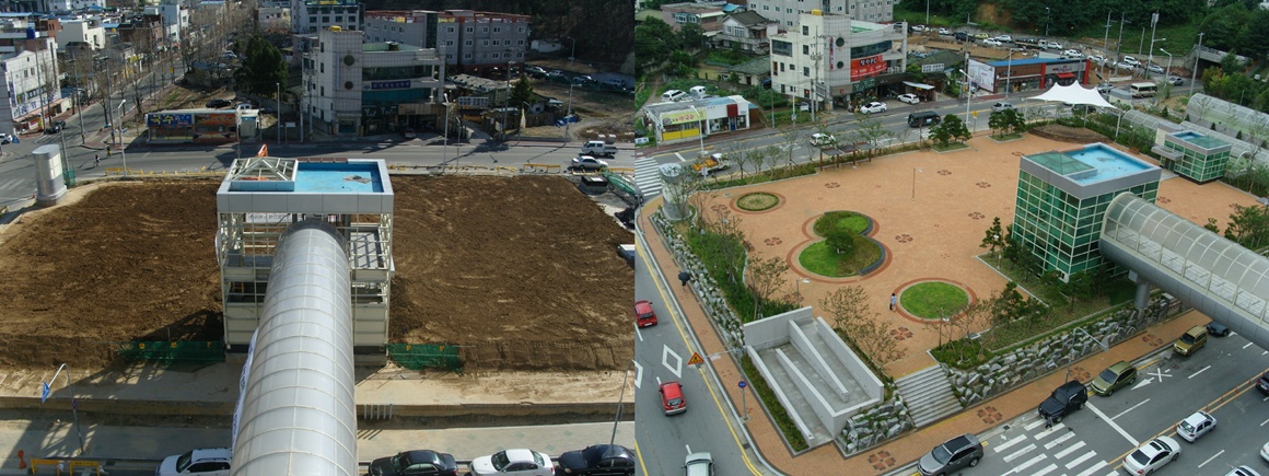 광장 바닥은 여름철 복사열을 흡수해 열기를 낮추는 황토블록으로 시공하고, 소규모 공연장 및 수목식재, 편의시설 등을 설치해 친구ㆍ연인과 만남의 장이 됨은 물론 시민들에 안락한 휴식공간을 제공하게 된다.