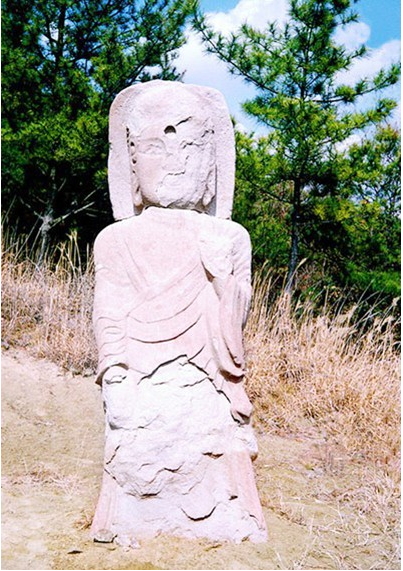 머리 부분은 나발로 표현되어 있으며, 두광과 함께 부조형식으로 조각하였으나 얼굴은 박리가 심하여 원상을 확인하기 어렵다.