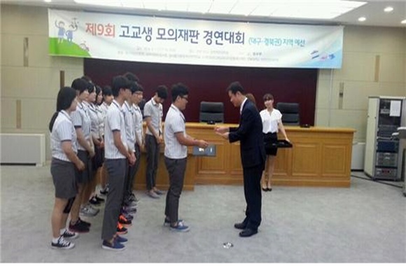 형곡고등학교(교장 장재성)의 법 동아리 'Justice'는 지난 8월 1일 경북대 법학전문대학원에서 실시한 법무부 주최 '제 9회 고교생 모의재판 경연대회' 대구ㆍ경북 예선 민사부문에서 최우수상을 수상해 전국대회 대구ㆍ경북 대표로 출전하는 쾌거를 거뒀다.