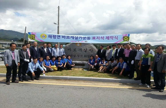 해평면 바르게살기운동위원회(위원장 정태근)는 8월 26일 해평면 송곡리 새마을기 군집게양대 앞에서 '바르게 살자' 표지석 제막식을 거행했다.