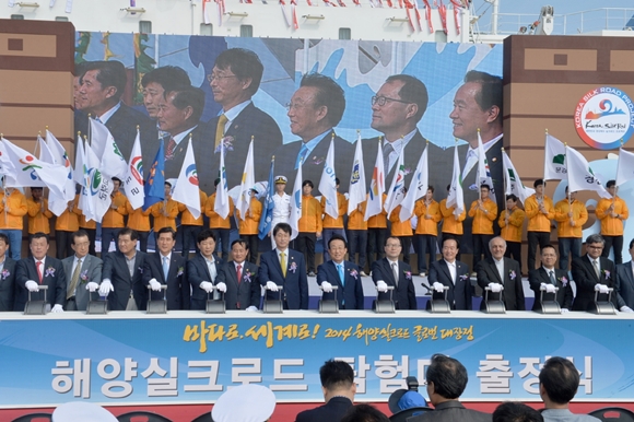 2014해양실크로드 글로벌 대장정의 핵심사업인 2014 해양실크로드 탐험대는 이날 출정식을 시작으로 10월 30일까지 총 45일 동안 9개국 10개항, 22,958km에 이르는 대장정으로 진행된다.
