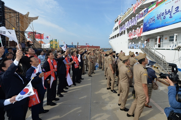 이번 2014해양실크로드 탐험대 출정식에는 김관용 경상북도지사, 김영석 해양수산부 차관, 박한일 한국해양대학교 총장, 이강덕 포항시장, 이병석 국회의원, 하산 타헤리안 주한이란 대사 등 국내외 내빈들과 해양실크로드 탐험대원 및 가족 등 1,000여명이 참석했다.