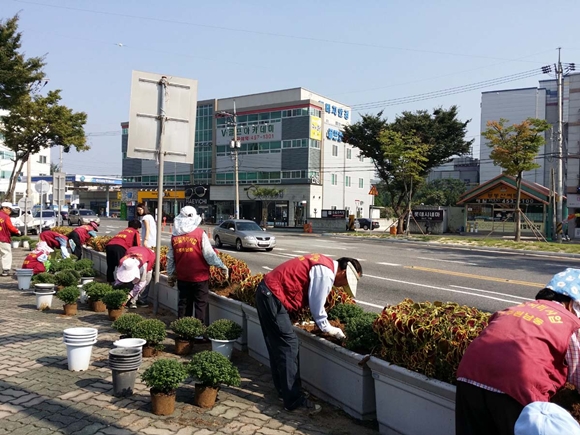 수점동 화단(200㎡)과 가로화분 50여개에 일일초, 국화 식재