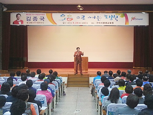 9월 24일 구미시평생교육원 대강당에서 구미시 홍보대사 개그맨 김종국을 초청, '웃음으로 여는 행복'이라는 주제로 시민 600여명이 참석한 가운데 제 62회 야은 아카데미 대시민 특강을 개최했다.