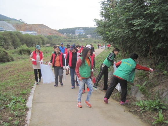 한천 산책로에서 쓰레기 일제정비