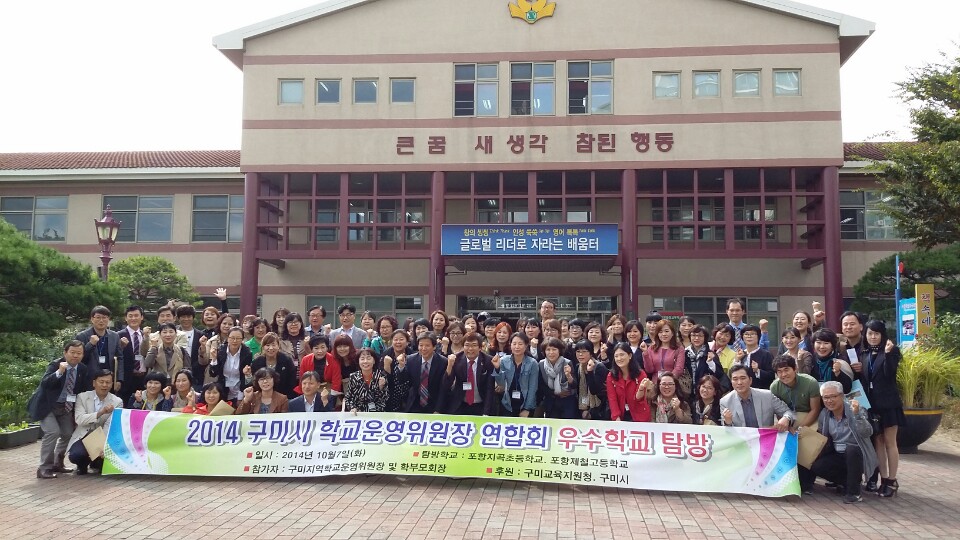 구미교육지원청(교육장 김정숙)과 구미시(시장 남유진)는 10월 7일 관내 초ㆍ중ㆍ고ㆍ특수학교 학교운영위원장과 학부모회장 총 81명을 대상으로 꿈과 끼를 키우는 창의인재와 명품고 육성을 위해 초ㆍ중등 우수학교 방문행사를 실시했다. 먼저 1998년 개교해 2013 대한민국행복학교박람회 우수교로 선정된 지곡초등학교와 포항제철고등학교를 방문해 학교 교육과정운영 현황에 대한 설명을 듣고 질의ㆍ응답 시간을 가졌다.