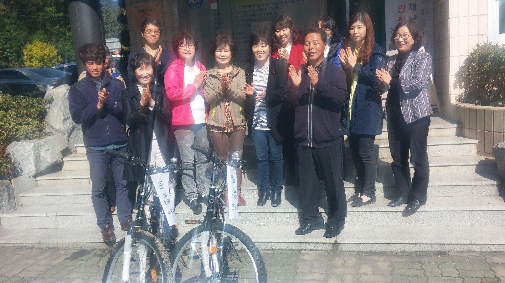 도량동 통장협의회(회장 신정자)는 10월 14일 이통장한마음연수대회와 소방기술경연대회에서 경품으로 받은 자전거 2대를 도량동주민센터(동장 최현도)에 기증했다.