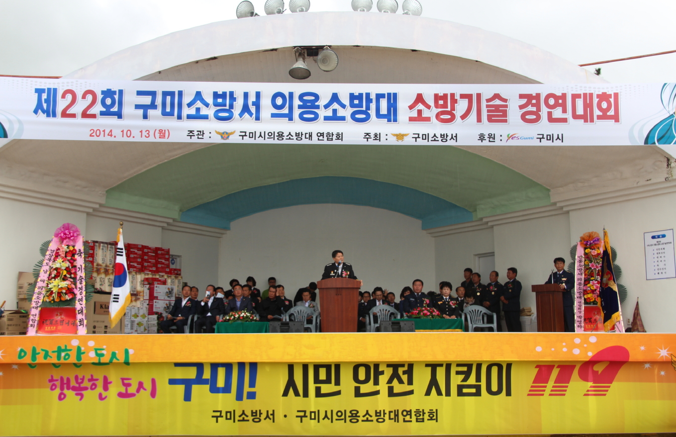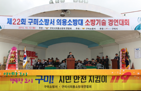 구미소방서(서장 이태형)가 주최하고 구미시의용소방대 연합회(회장 조광현)가 주관하는 제22회 의용(여성)소방대 소방기술경연대회가 10월 13일 구미 해평 구미청소년수련원 운동장에서 열렸다.