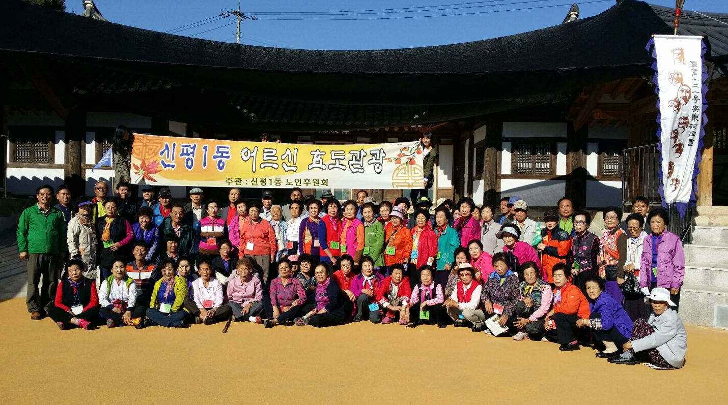 신평1동(동장 권남원)은 10월 경로의 달을 맞아 10월 15일 노인후원회(회장 김종호) 주관으로 관내 어르신 100여명을 모시고 유교의 본향인 안동 일원 관광지를 찾아 뜻 깊은 하루를 보냈다.