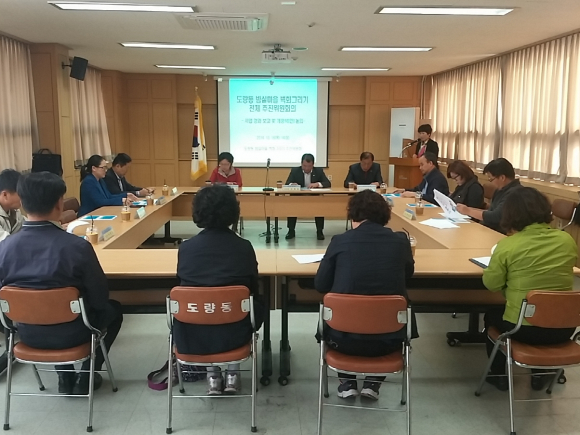 도량동(동장 최현도)은 10월 16일 주민센터 에서 추진위원, 자문위원, 주민대표, 지역작가 등 20명이 참석한 가운데 도량동 밤실마을 벽화사업 추진회의를 개최했다.