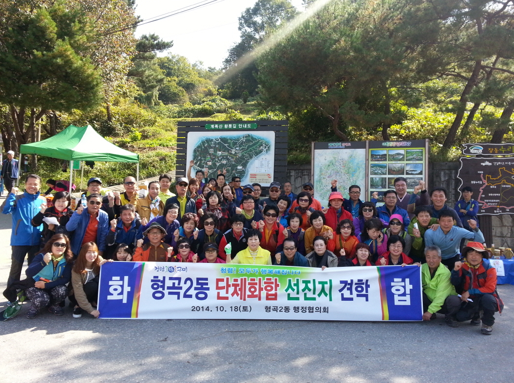 형곡2동(동장 박성애)은 10월 18일 행정협의회, 통장협의회(회장 정화옥) 주최ㆍ주관으로 관내 9개 단체장 및 회원, 동민, 직원 등 90여명과 함께 대전 계족산 및 육영수여사 생가로 선진지 견학을 다녀왔다.