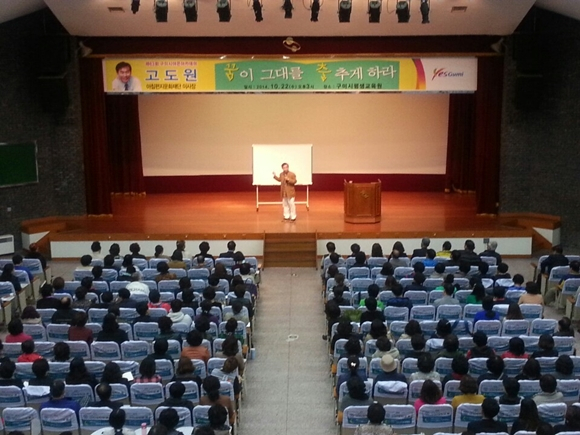 구미시평생교육원(원장 최윤구)은 10월 22일 아침편지문화재단 고도원 이사장을 초청해 시민 600여명이 참석한 가운데 제63회 야은 아카데미 대시민 특강을 개최했다.