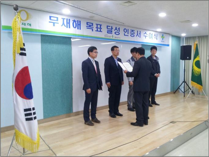 이와 같은 노력으로 2012년 12월 1일 무재해운동을 개시한 이래 한건의 재해도 발생하지 않아 2014년 7월 31일 무재해 1배수 목표(416일)를 달성하게 됐으며, 현재 2배수 목표달성을 위해 사업장 안전보건관리에 박차를 가하고 있다.