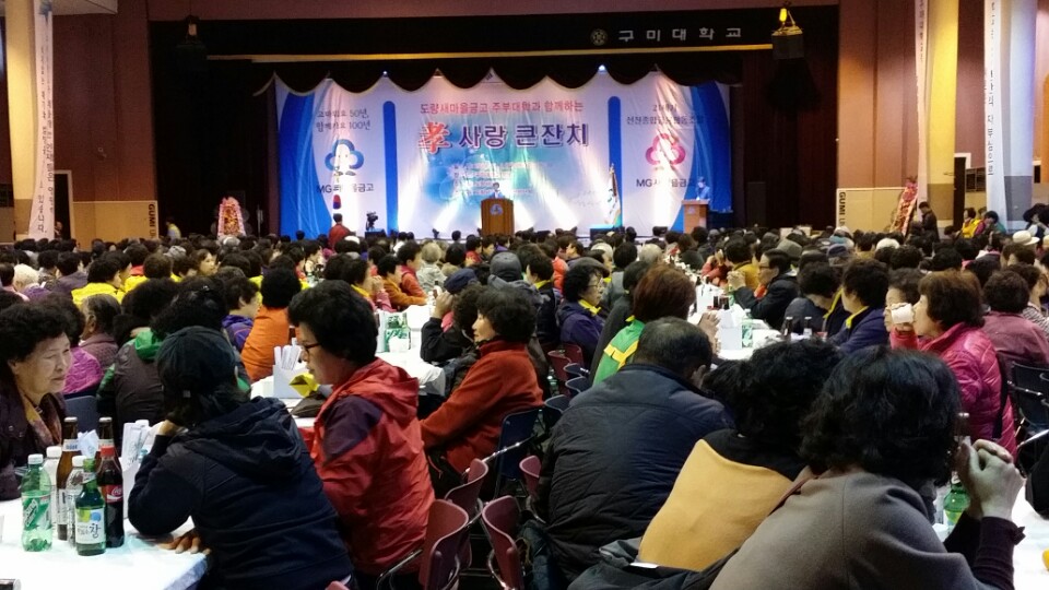 도량동 새마을금고(이사장 김장수)는 11월 2일 구미대학교 긍지관 대강당에서 심학봉 국회의원, 도ㆍ시의원, 관내 어르신 및 자원봉사자 등 1,500여명이 참석한 가운데 새마을금고 주부대학 효사랑 큰잔치를 개최했다.