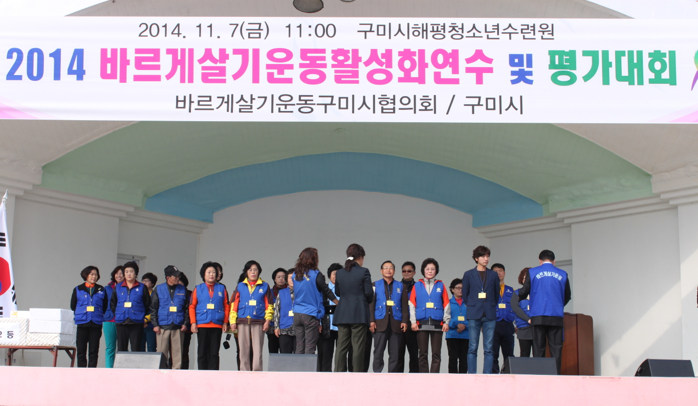 구미시바르게살기운동협의회(회장 김인배)는 11월 7일 해평청소년수련원에서 700여명의 회원이 참석한 가운데 '2014 바르게살기운동 활성화연수 및 평가대회'를 개최했다.